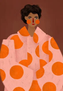 Illustration von Bea Muller: stilvolles Frauenporträt mit orangen Punkten