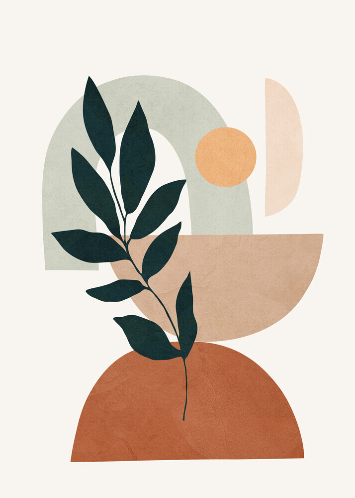 Abstraktes Wandbild mit sanften Formen in erdigen Tönen, das eine harmonische Atmosphäre schafft.