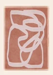 Abstrakte Linienkunst in sanften Terrakotta-Tönen, die fließende Bewegungen darstellt.