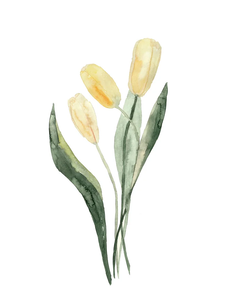 Wandbild von Christina Wolff: stilvolle gelbe Tulpen in sanften Farben