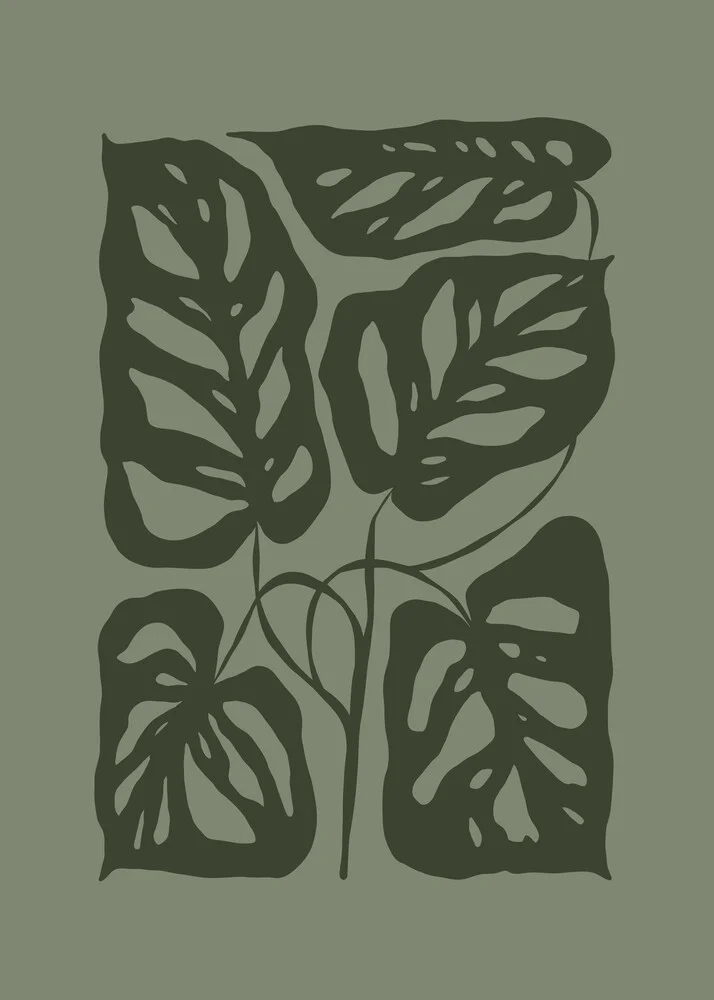 Mockup Illustration von Gal Pittel: stilisierte Monstera Pflanze in sanften Grüntönen.
