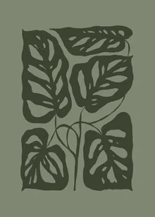 Illustration von Gal Pittel: stilisierte Monstera Pflanze in sanften Grüntönen.