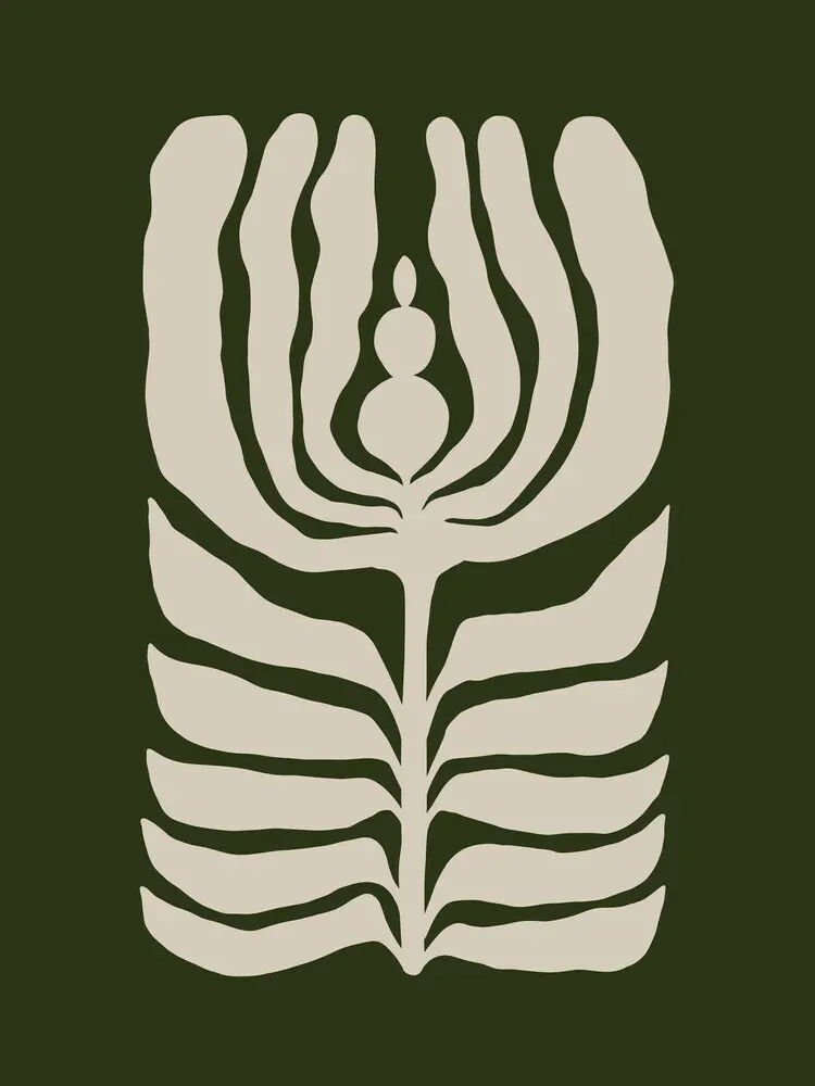 Mockup Wandbild von Gal Pittel: Abstrakte botanische Darstellung in sanften Grüntönen