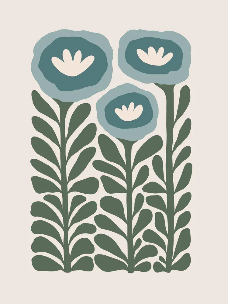 Abstrakte Illustration mit blühenden Formen in sanften Blautönen