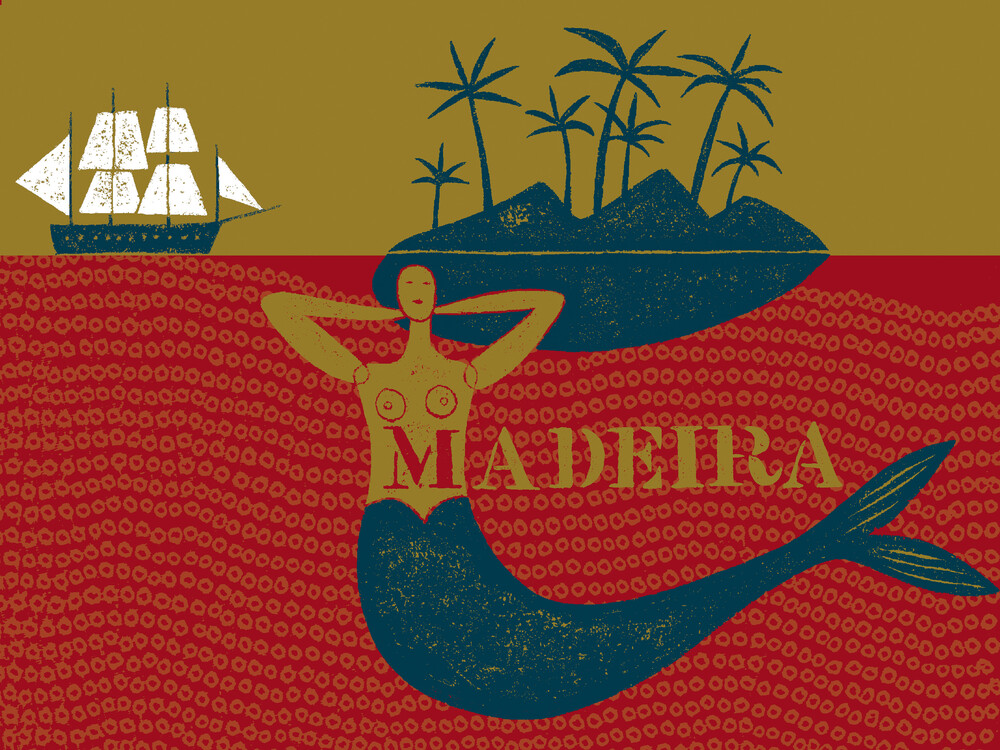 Mockup Illustration von Jean-Manuel Duvivier: Segelboot unter Palmen auf Madeira