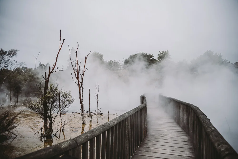 Fotokunst von Jessica Wiedemann: neblige Brücke in einer mystischen Landschaft