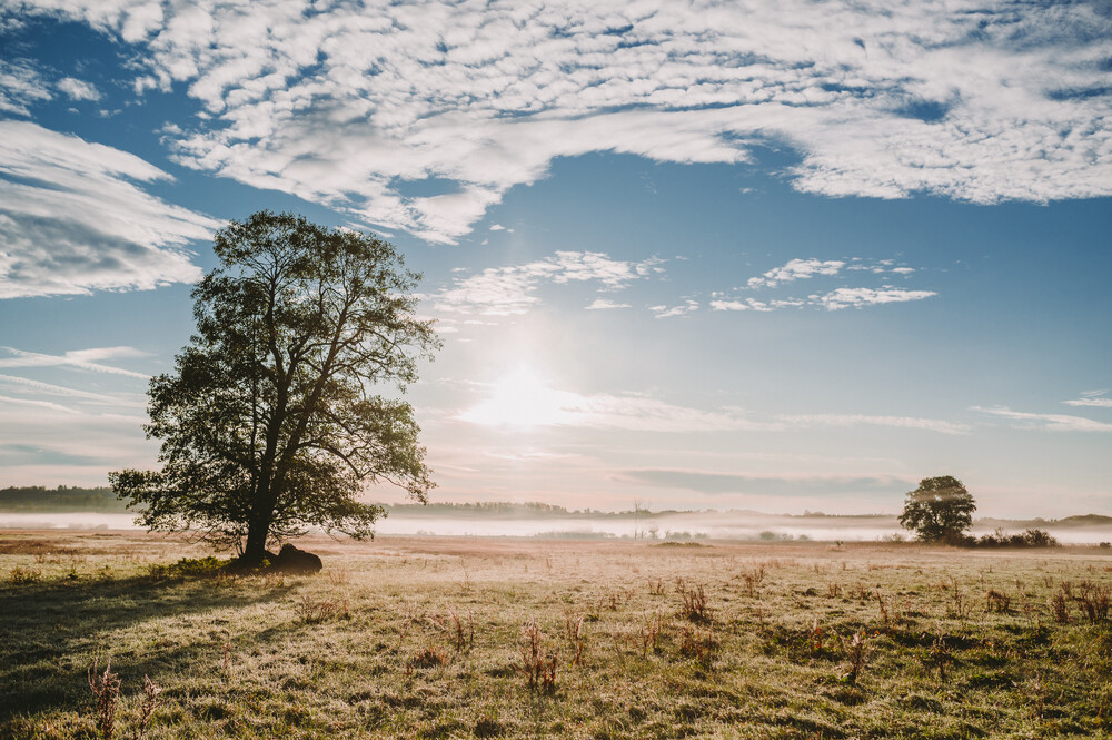 Fotokunst von Jessica Wiedemann: Nebel über einer moosigen Landschaft in Bayern