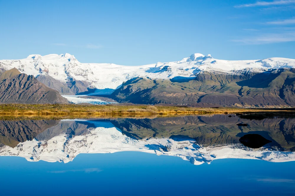 Fotokunst von Lars Brauer: ruhiger See mit Bergen und spiegelndem Wasser in Island