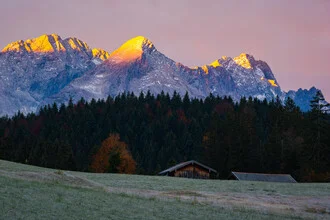 Fotokunst von Martin Wasilewski: sanftes Alpenglühen über den Bergen