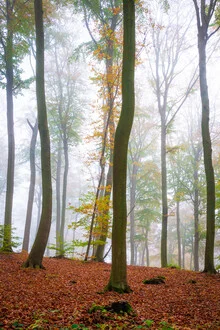 In diesem Foto von Martin Wasilewski entfaltet sich die ruhige Schönheit eines nebligen Herbstmorgens im Wald auf der Insel Usedom. Die sanften Brauntöne der Bäume schaffen eine einladende Atmosphäre und laden dazu ein, in die Stille der Natur einzutauchen. Die Nebelverhüllung verstärkt die Stimmung und verleiht der Szene eine fast traumähnliche Qualität, die perfekt für Wohnräume oder Büros geeignet ist, in denen eine entspannende Umgebung gewünscht wird.