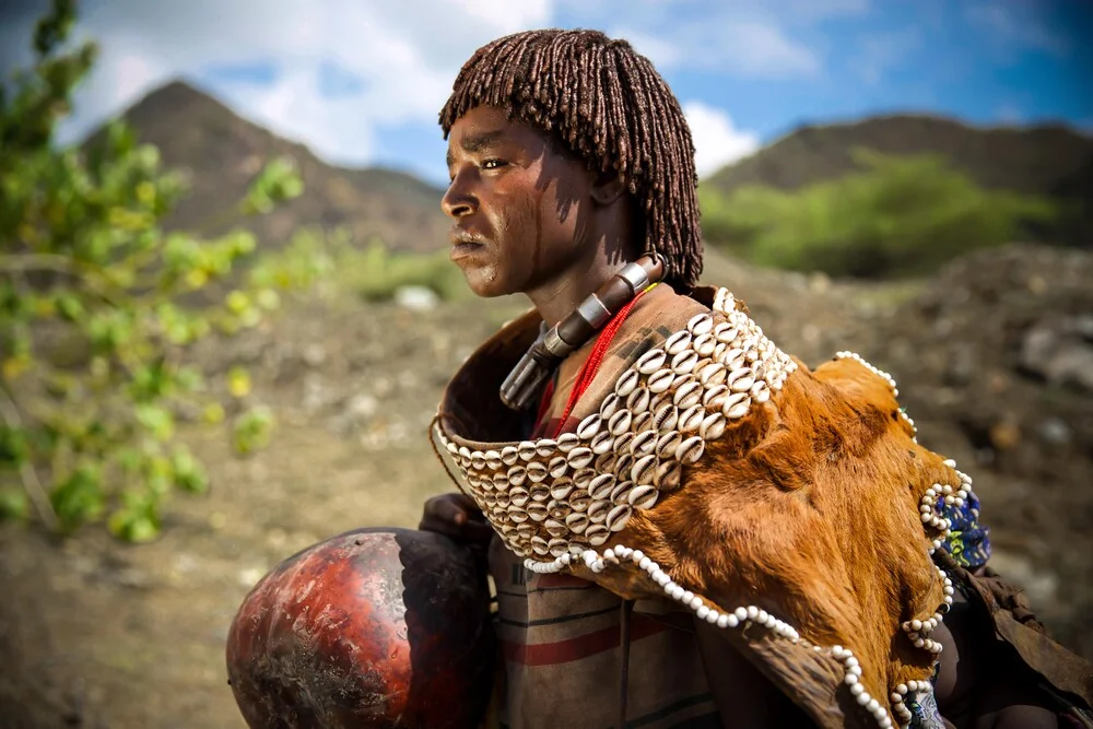 Fotokunst von Miro May: Frau aus der Hamar-Kultur in Äthiopien, entspannte Atmosphäre.