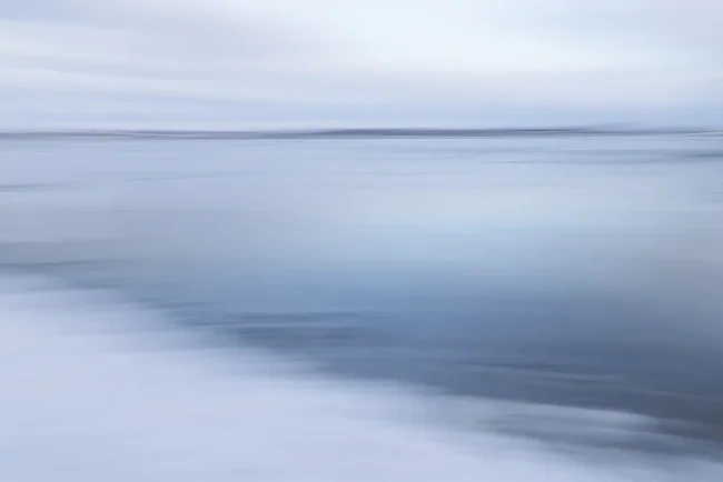 Fotokunst von Nadja Jacke: verwischte Winterküste mit sanften Farben