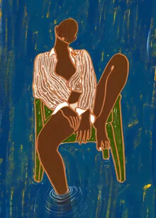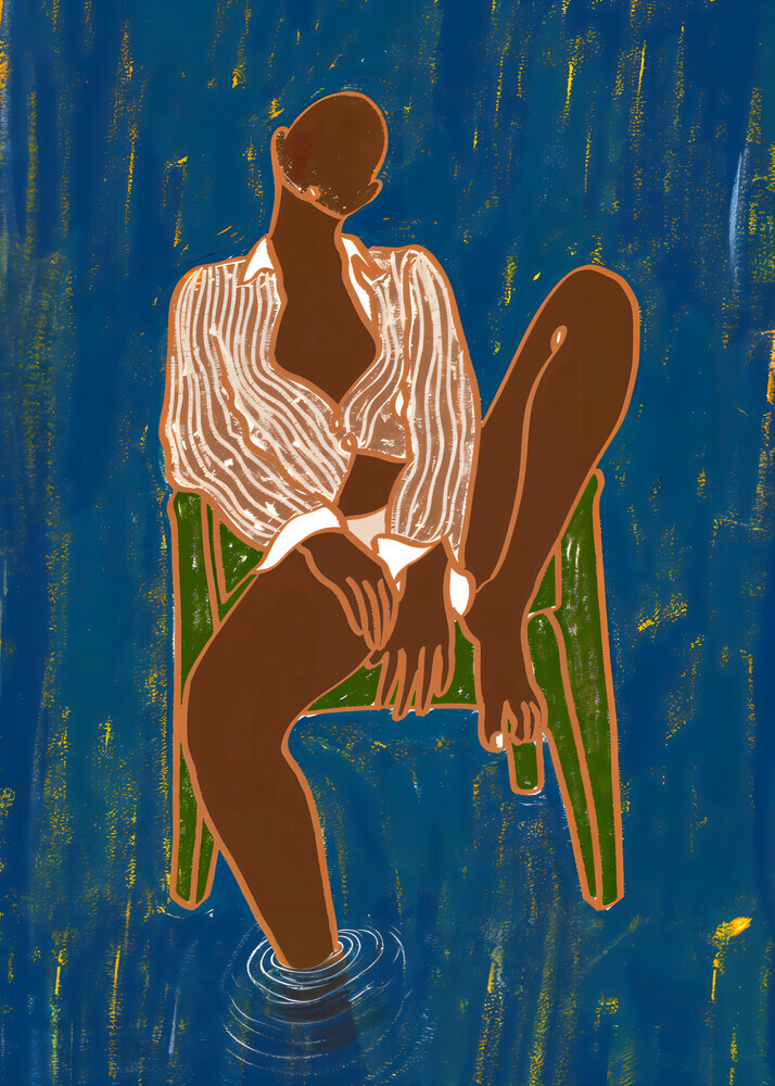 Illustration von Uma Gokhale: Frau sitzt entspannt auf einem Stuhl über Wasser