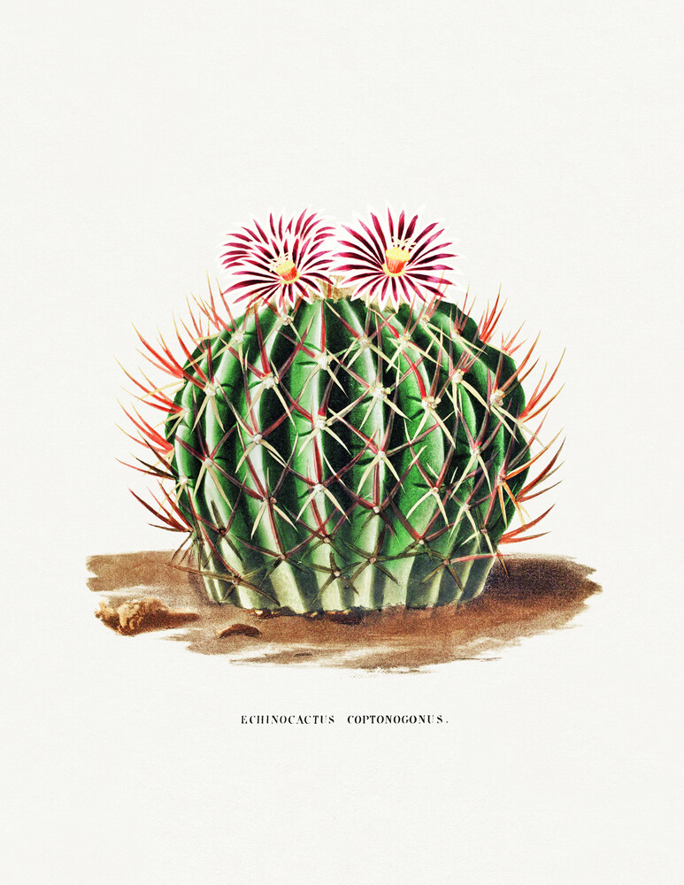Illustration eines Echinocactus Coptonogonus in sanften Farben, vermittelt Ruhe und Naturverbundenheit.