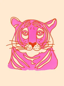 Wall art by Ania Więcław: stylish illustration of a pink tiger in pop art style