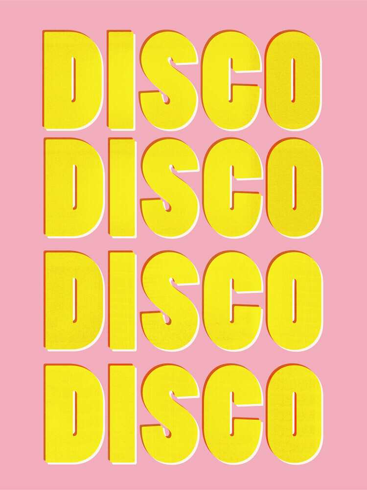 Mockup Colorful illustration featuring retro typography in pink and yellow.