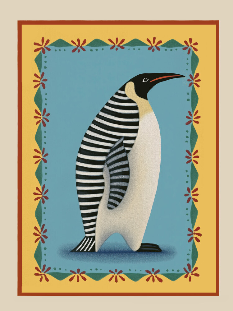 Mockup Illustration of a striped penguin by Branka Kodžoman, friendly and playful.