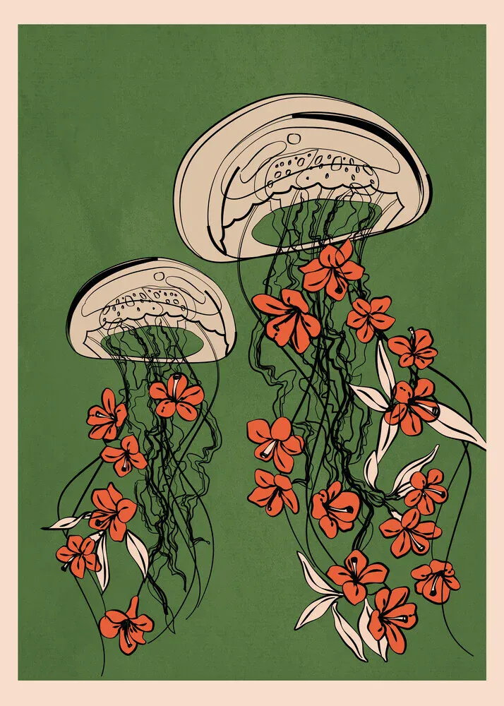 Illustration by Branka Kodžoman: floral jellyfishes in soft colors