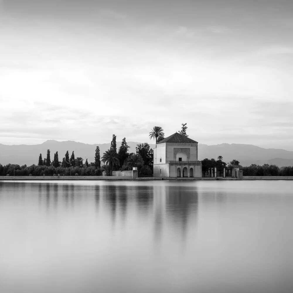 Photo art by Christian Janik: serene Menara gardens with water reflections