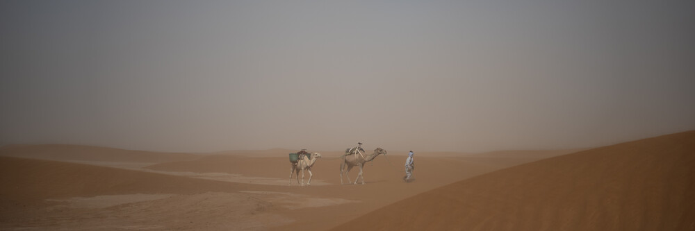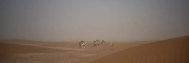 Photo art by Dennis Wehrmann: serene caravan of camels in the Sahara