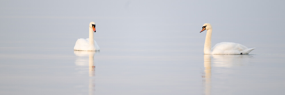 Mockup Photo of swans on the Baltic Sea, gentle waves and calm water surface