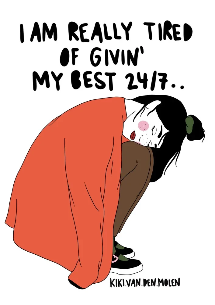 Illustration by Kiki Van Den Molen: a thoughtful woman in soft colors