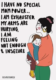 Illustration by Kiki Van Den Molen: mother with empowering symbols of strength.