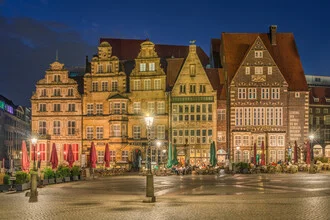 Night photo of houses at the market square in Bremen, soft colors and calm atmosphere.