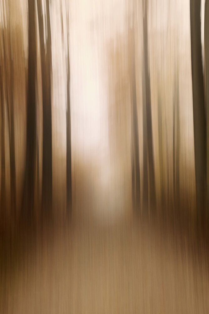Photo art: blurred autumn forest with soft colors and motion