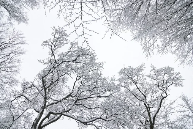 Photo art by Nadja Jacke: calm winter tree tops covered in snow