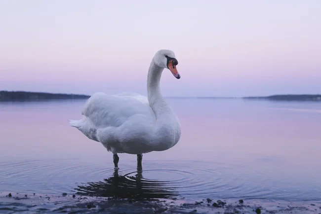 Photo art by Nadja Jacke: calm evening mood with a swan on the water