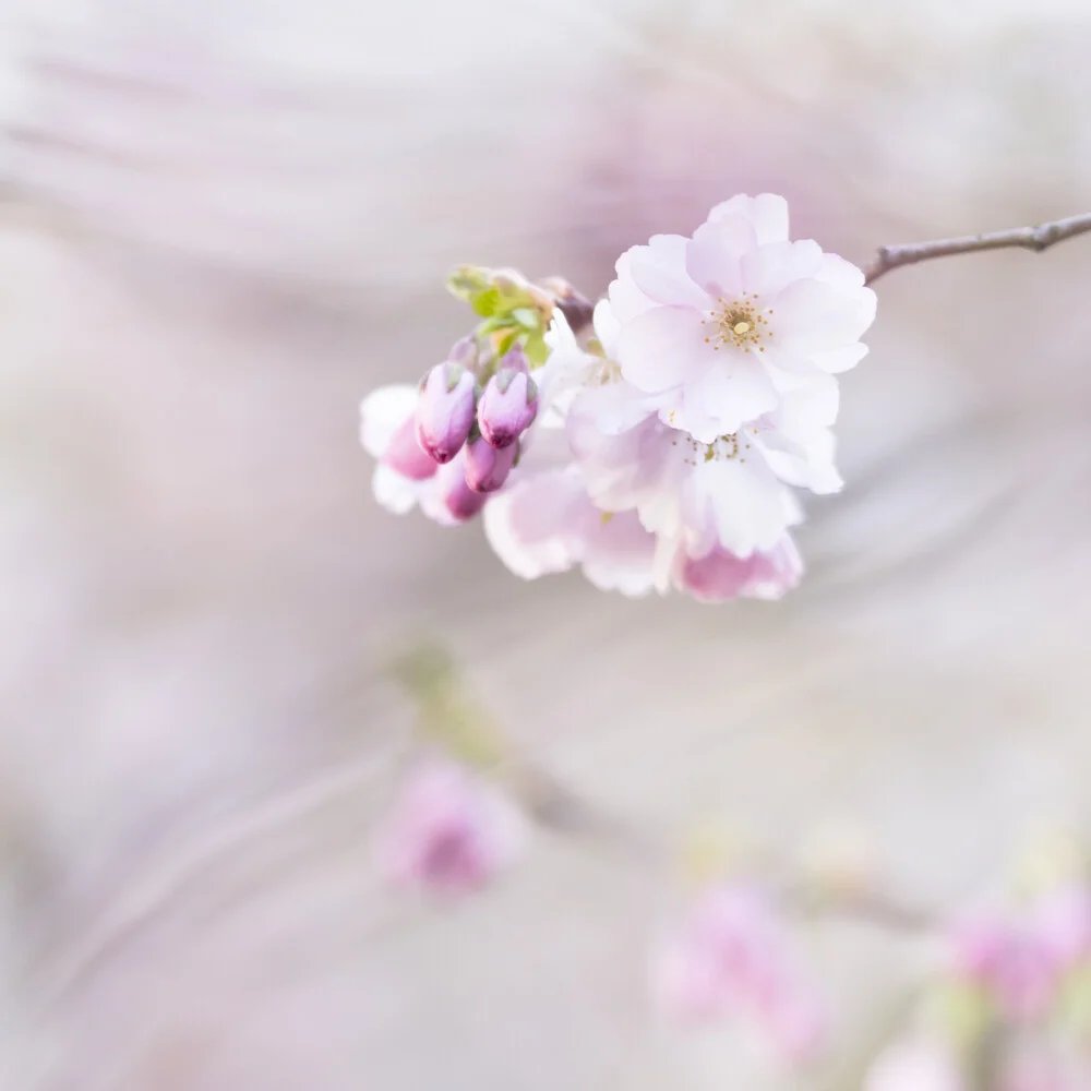 Delicate cherry blossoms in spring, soft pink against a clear sky