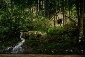 Moodful photo art: moss-covered creek with a hut in the Allgäu