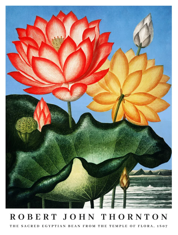 Wall art of a botanical illustration featuring the sacred Egyptian bean