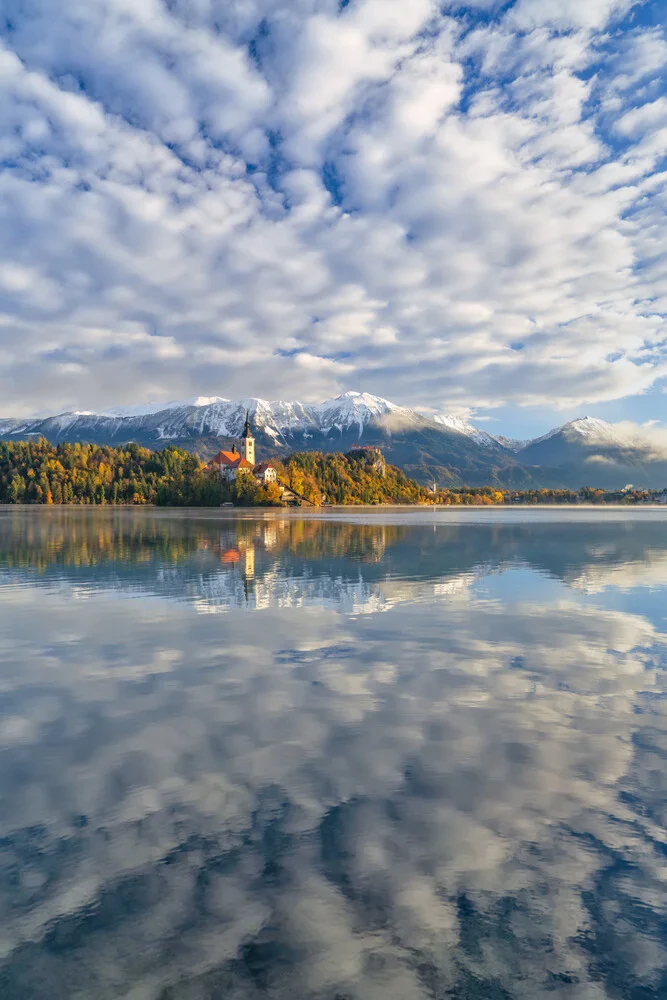 Mockup Photo art by Achim Thomae: Sunrise over Lake Bled in Slovenia