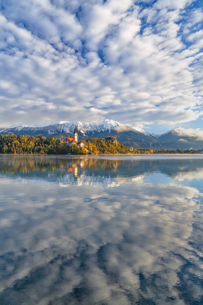 Photo art by Achim Thomae: Sunrise over Lake Bled in Slovenia