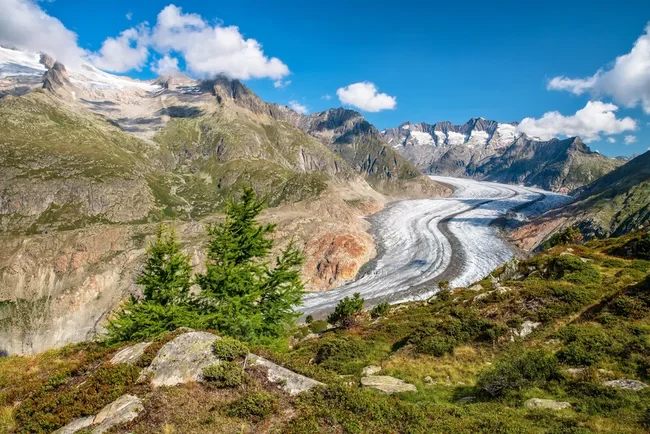 Photo art by Achim Thomae: Aletsch Glacier in a summer mountain landscape