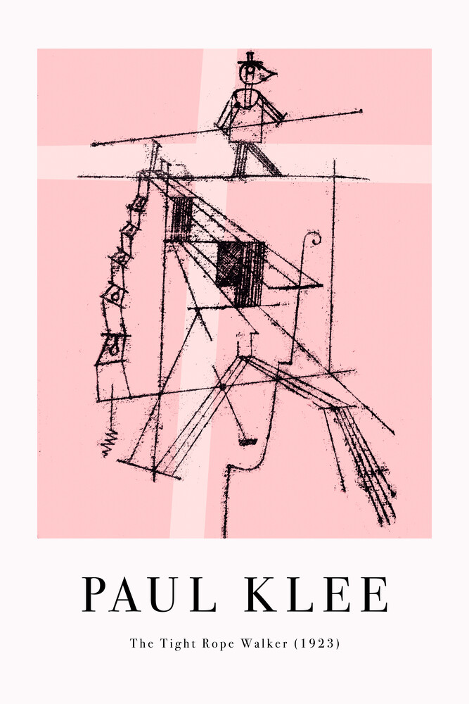 Mockup Illustration by Paul Klee: tightrope walker in soft pink and rose tones