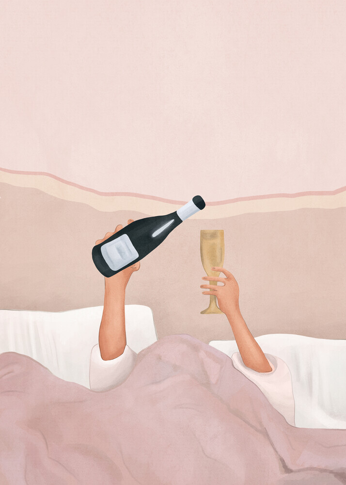 Illustration by Branka Kodžoman: wine in bed and a relaxing morning vibe