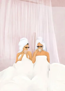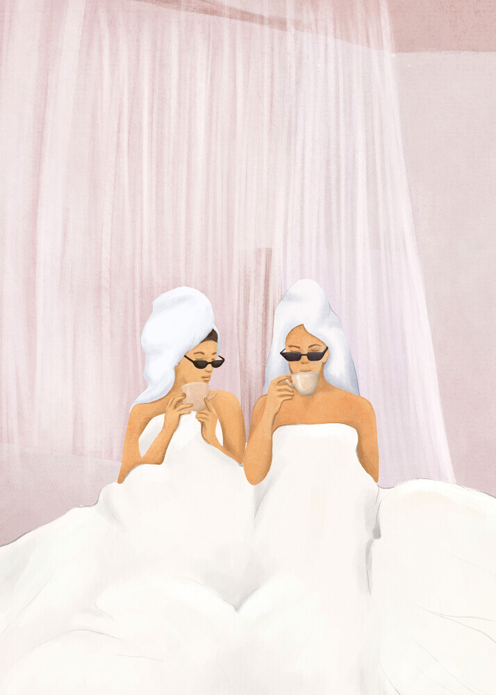 Wall art by Branka Kodžoman: relaxed morning scene with a friend in bed
