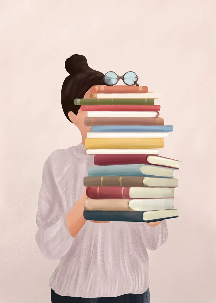 Illustration by Branka Kodžoman: serene reading scene with a woman and books