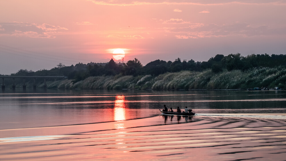 Photo art: serene view of the Mekong River in Cambodia, soft colors and a peaceful mood.