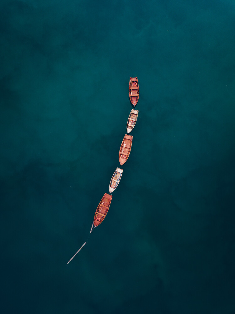Photo art by Daniel Schumacher: calm row of boats at Prager Wildsee in Italy.