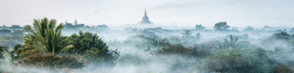 Photo art by Jan Becke: morning fog over the temples of Bagan
