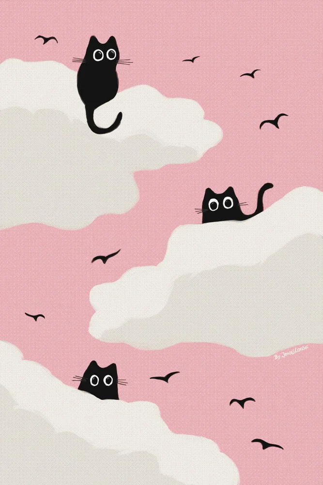 Mockup Illustration by Jonas Loose: playful cats under a pink sky