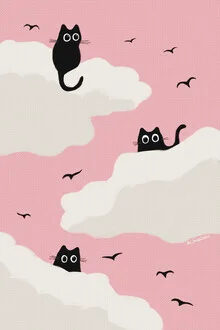 Illustration by Jonas Loose: playful cats under a pink sky