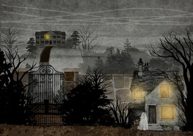 Mockup Illustration by Katherine Blower: mysterious gatekeeper in a dark landscape