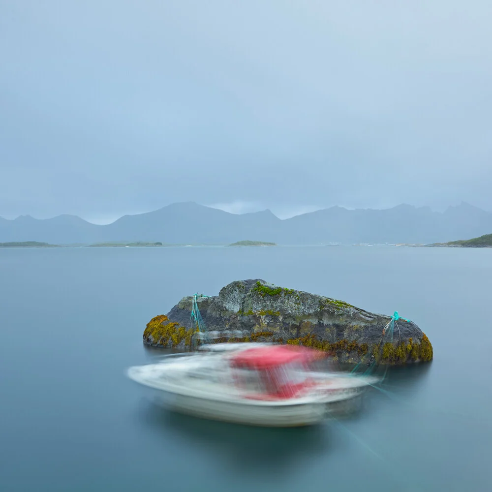 Photo art by Lars Almeroth: a boat dances gently in the rain on the water