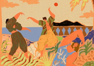 Mockup Illustration by Arty Guava: women dancing in warm colors and soft lines.