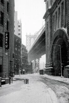 Mockup Black and white photo by Matthias Reichardt: Manhattan Bridge in the snow.
